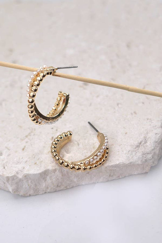 DOUBLE ROW PEARL GOLD MIX HOOP EARRINGS | 31E24895