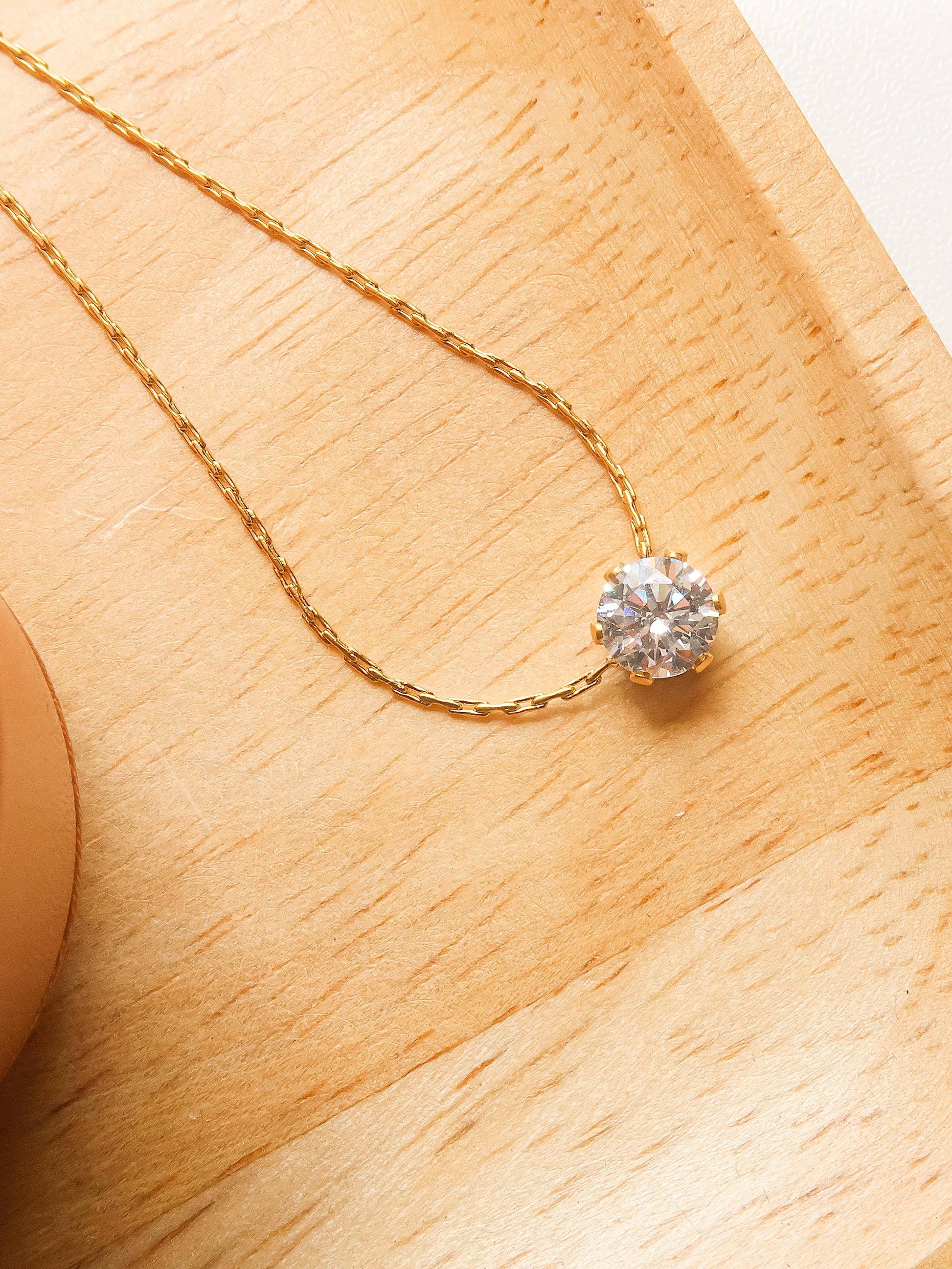18K Non-Tarnish Petite Round CZ Necklace 18K Gold Plating Stainless Steel Cubic Zirconia Pendant Size (inch): 0.2 diameter Chain Length (inch): 16 Extension Length (inch): 2"