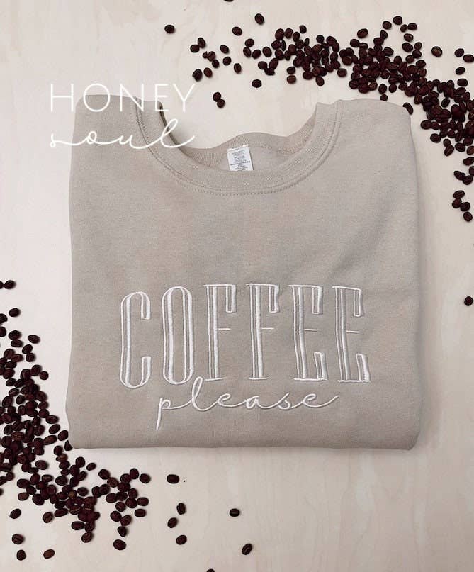 Embroidered Coffee Please Sweatshirt || Coffee Please Crewneck || Fun Sweatshirt || Funny Sweatshirt || Trendy Crewneck