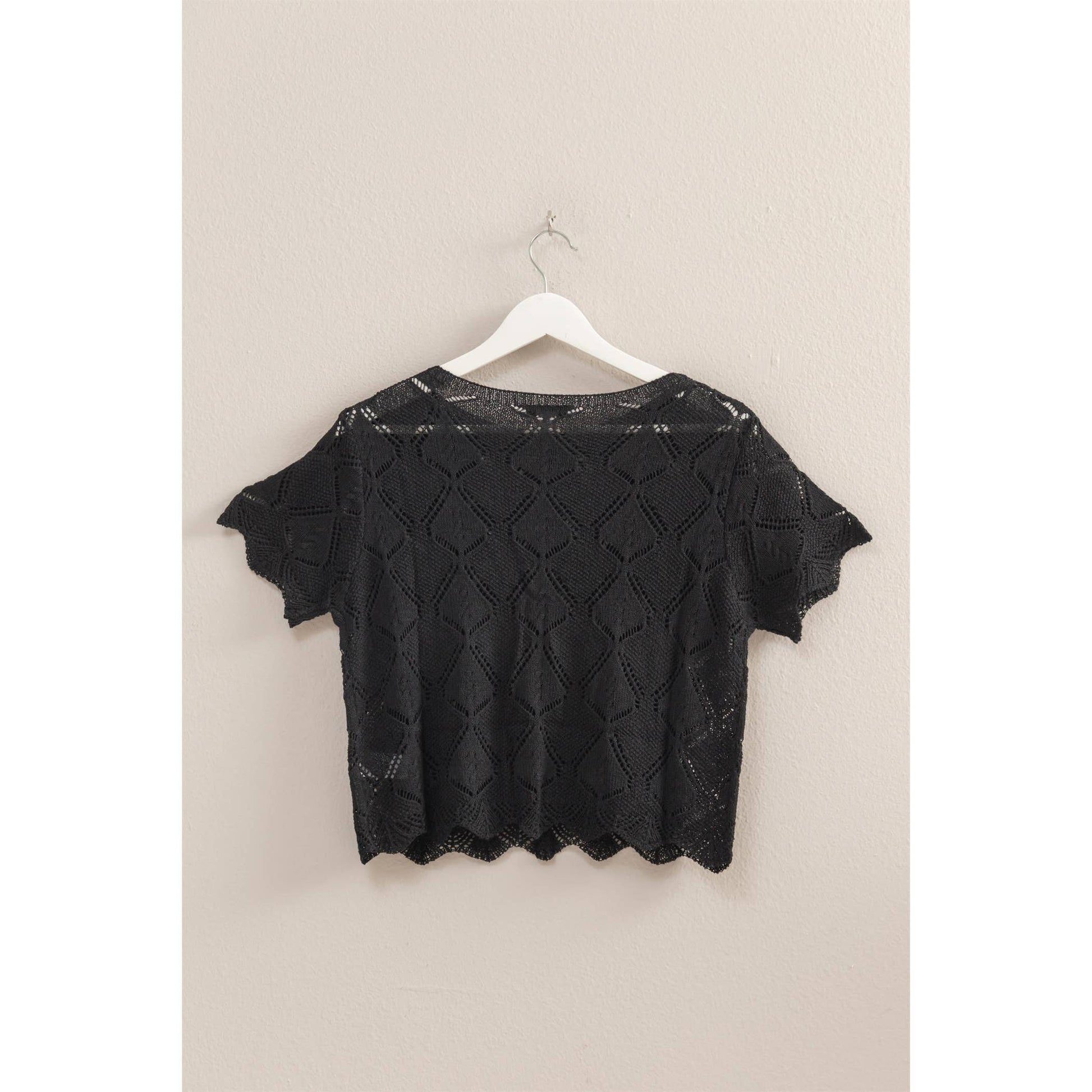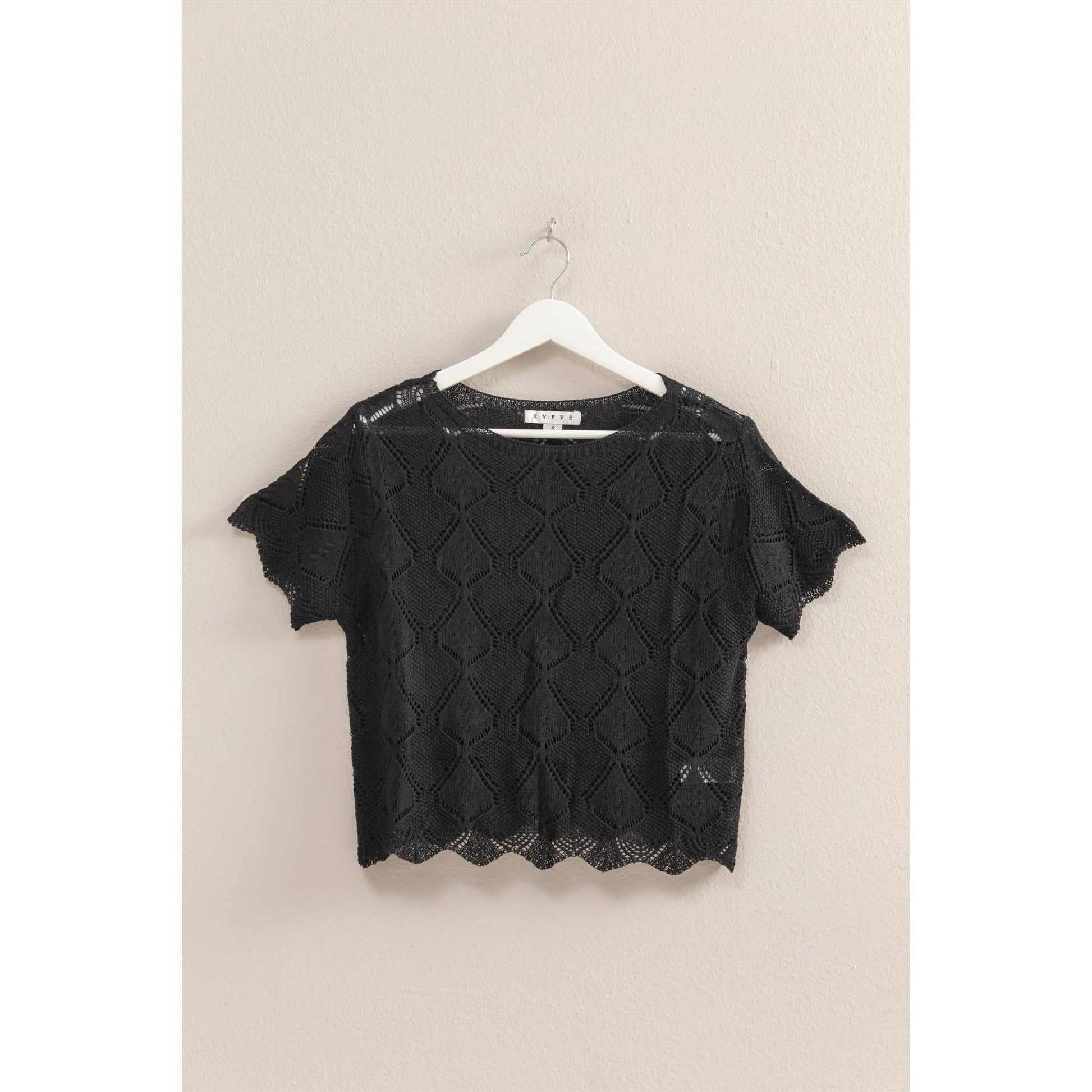 You'Ll Be Looking Super Sweet In This Basic Top. An Open Stitch Knit Construction Shapes This Top That Forms A Boat Neckline And Short Sleeves. The Top Offers A Slightly Relaxed Silhouette And Ends In A Wavy Hem. Style With Denim Skirt.