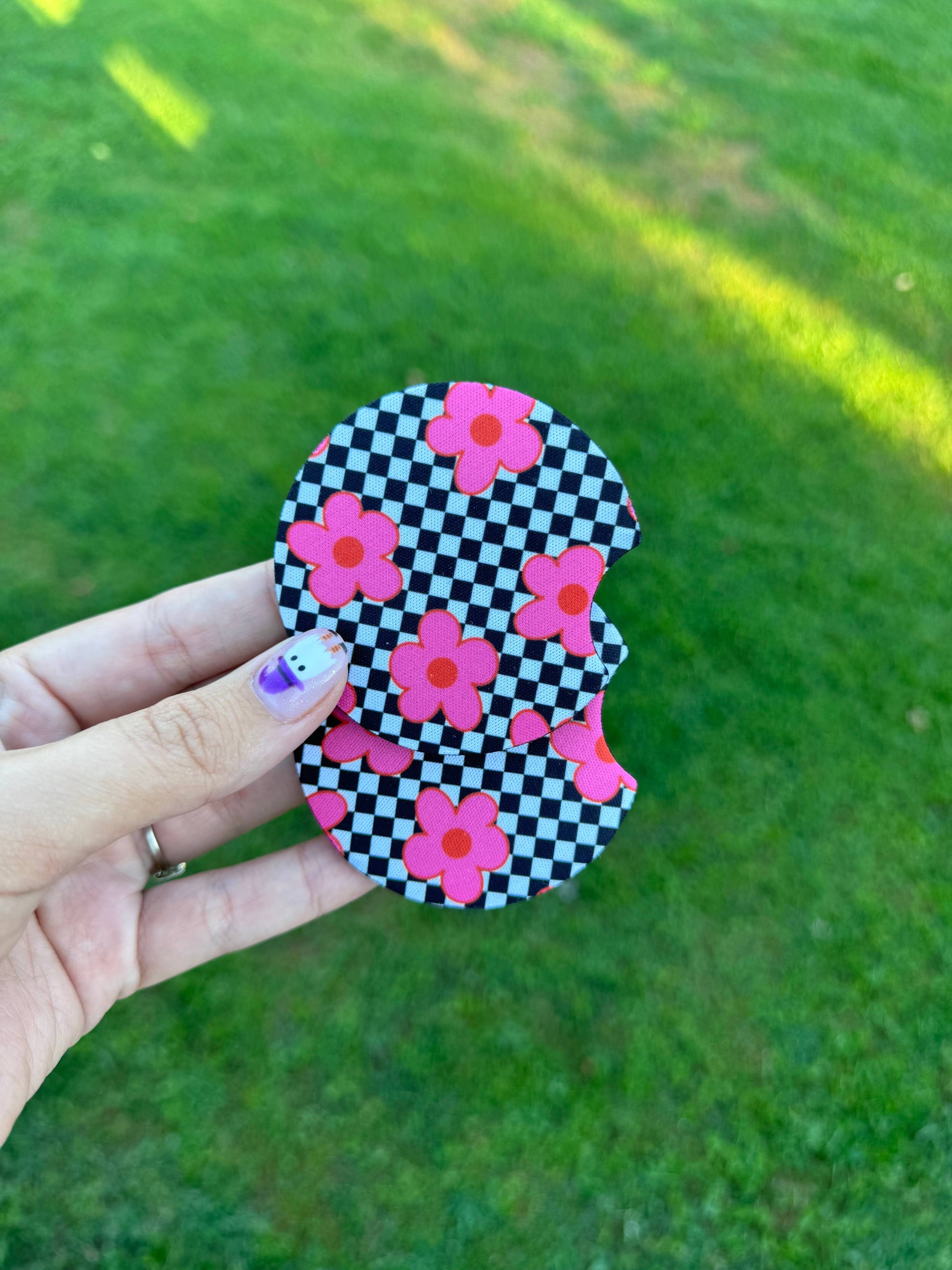 Neon Checkered Flower Car Coaster Set
