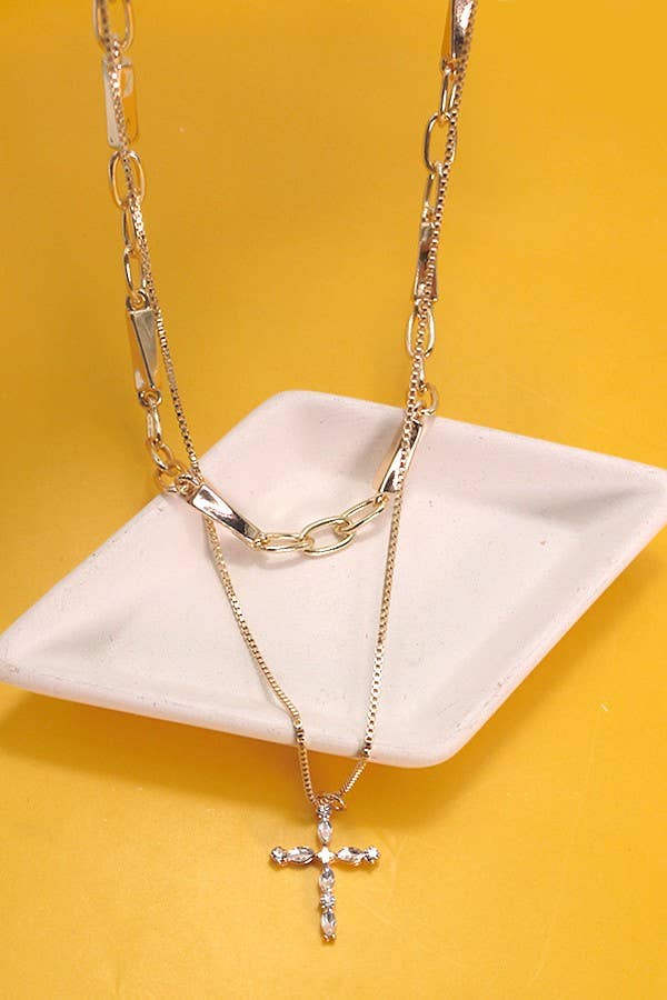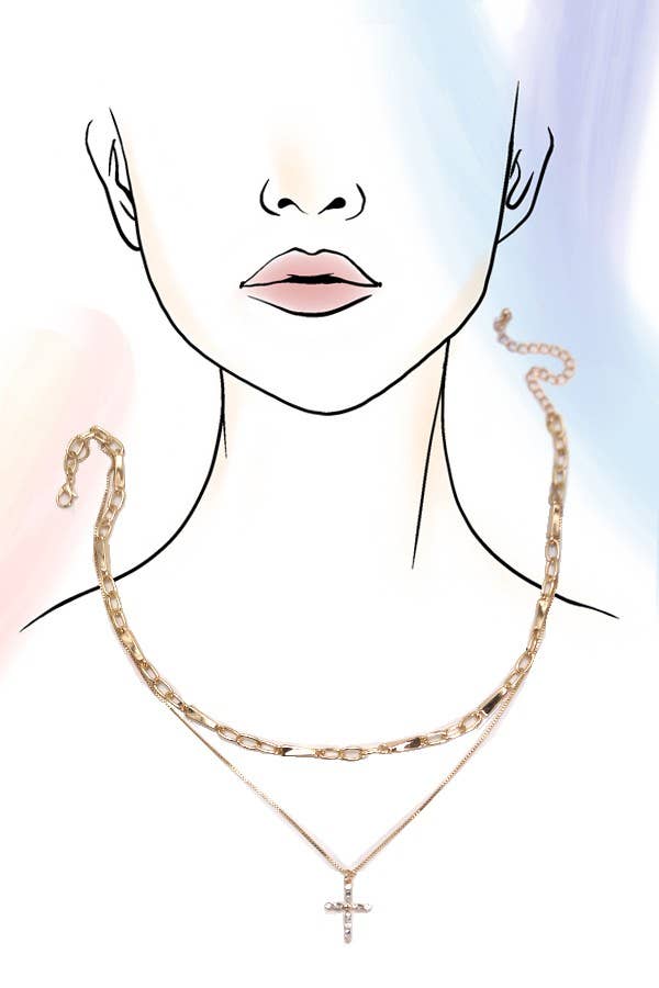 Cross Necklace | Chain | Religious Necklace | Layered Necklace | Gold Necklace | Gold | Rhinestones | Simple | Pendent | Charm | Cross | Stacking Necklaces | Mom | Mama | Gift | Necklace | Spring | Summer | Festival | Prom | Trendy | New | Minimalist